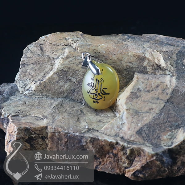 گردنبند عقیق زرد حکاکی علی ولی الله _ کد : 400804